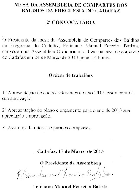 No passado dia 30 de março, decorreu no Cadafaz um almoço organizado pela Comissão de Festas de 2013, este foi servido pelo Restaurante A Saborosa, o qual nos vem habituando a um excelente serviço.